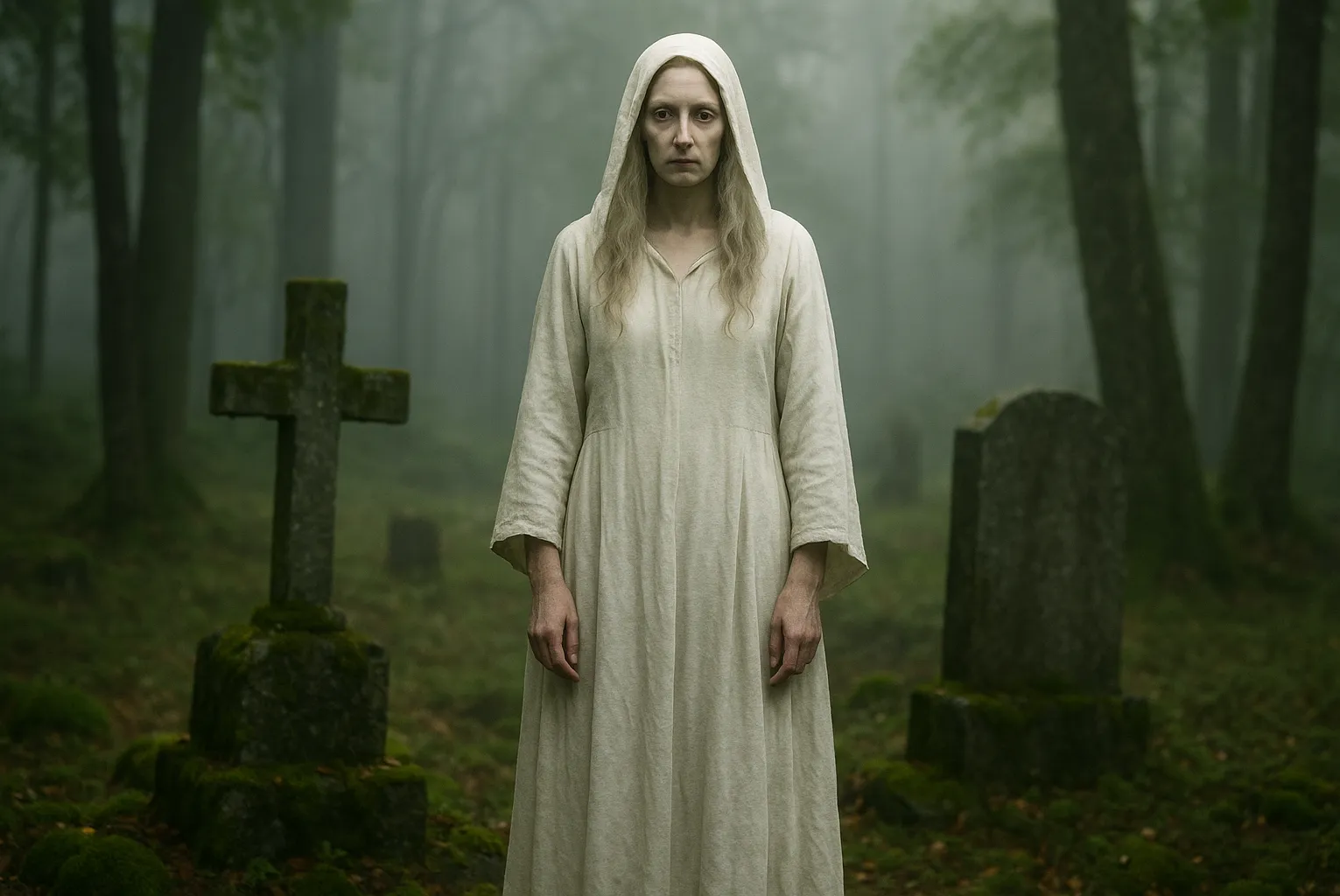 Kyrkogårdens kvinnliga väktare. Gravfrun vakar över gravfrid och heliga platser, varnar stilla och straffar skändning, stöld och ovett. Den som håller tystnad, går på gångarna och vårdar minnesplatser går i fred; den som bryter helgd möter kyla, tyngd och oro.
