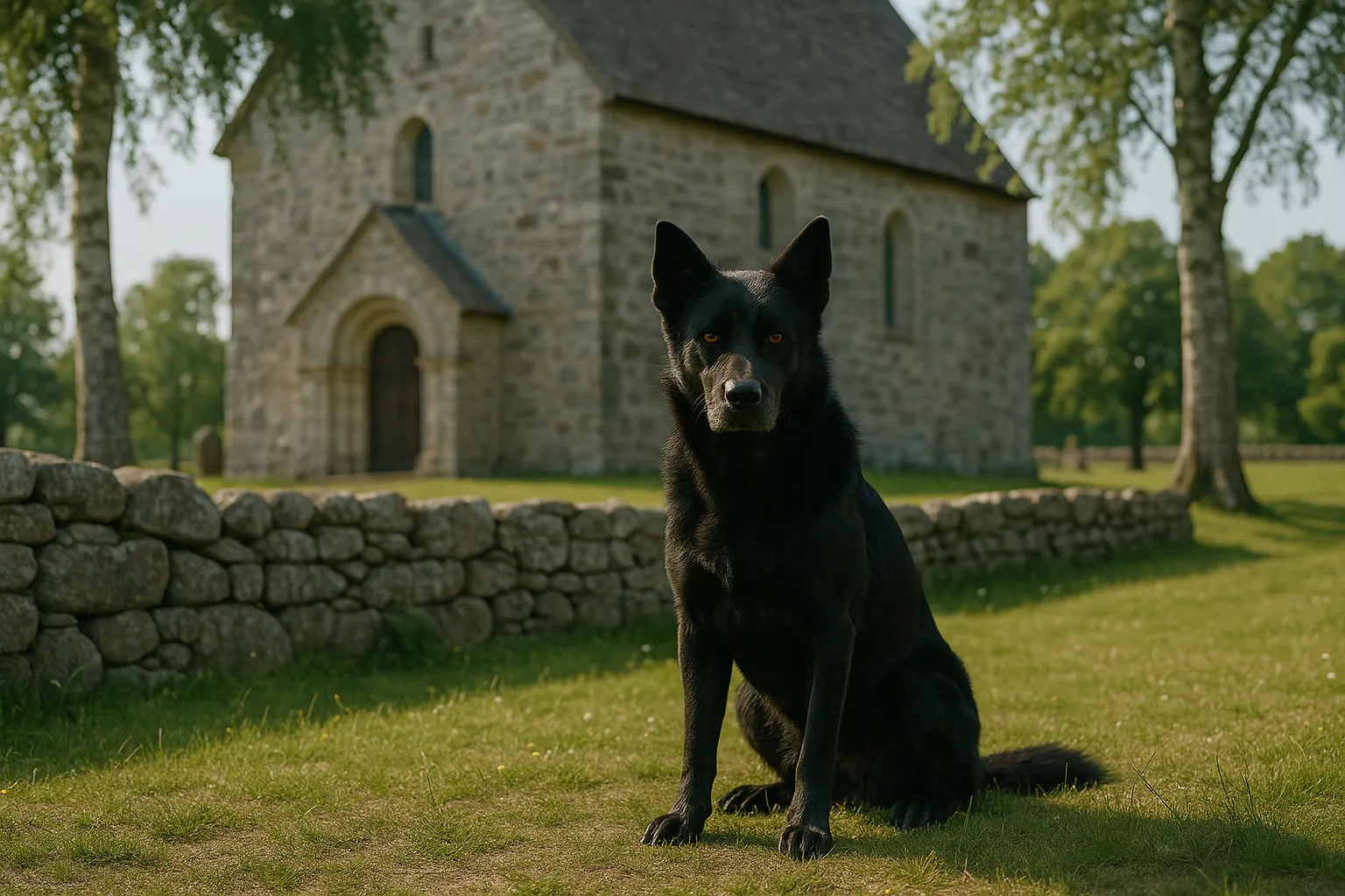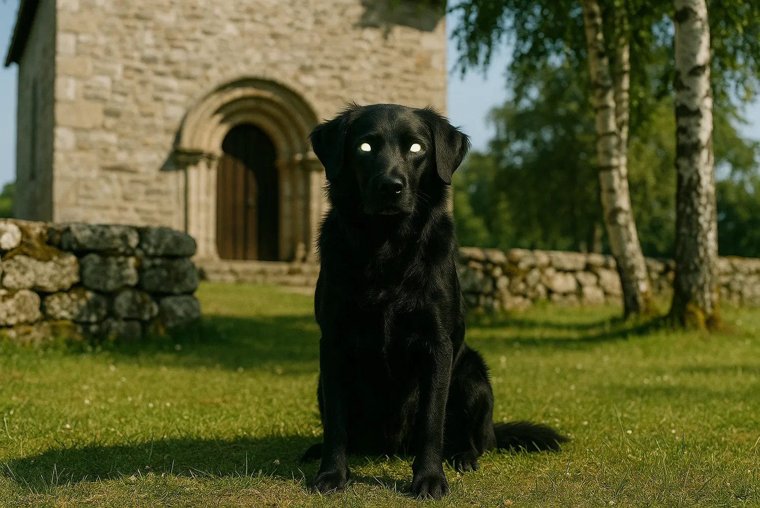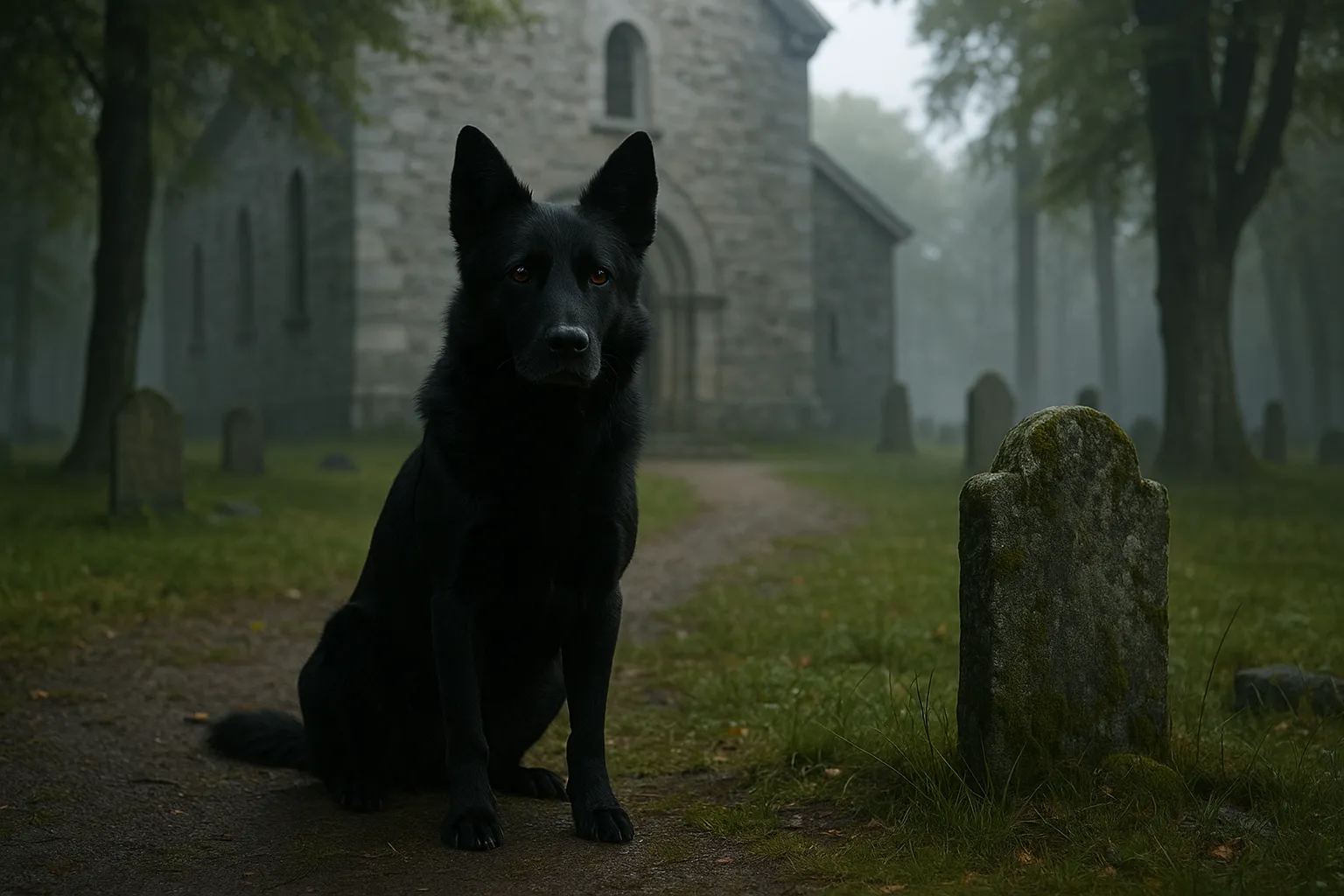 Kyrkogrimmen – även kallad kyrkogrim – binds till helgad mark och visar sig i skymning som en mörk djurgestalt med glöd i ögonen. Den rör sig ljudlöst längs gångar, sätter sig vid porten eller syns som en skugga i tornet när klockan slår. Närvaron märks som kyla, tung luft och en dov stillhet; djur tystnar, lyktor fladdrar utan vind och marken känns “vaktad”.