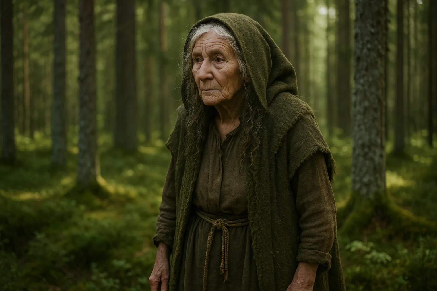 Skogens matriark – mäktig, erfaren och rättvis. Hon vakar över stigar, djur och heliga lundar, belönar tystnad, måttfullhet och hållna löften, men förvillar och straffar tjuvjakt, skräp, rovdrift och svordomar.