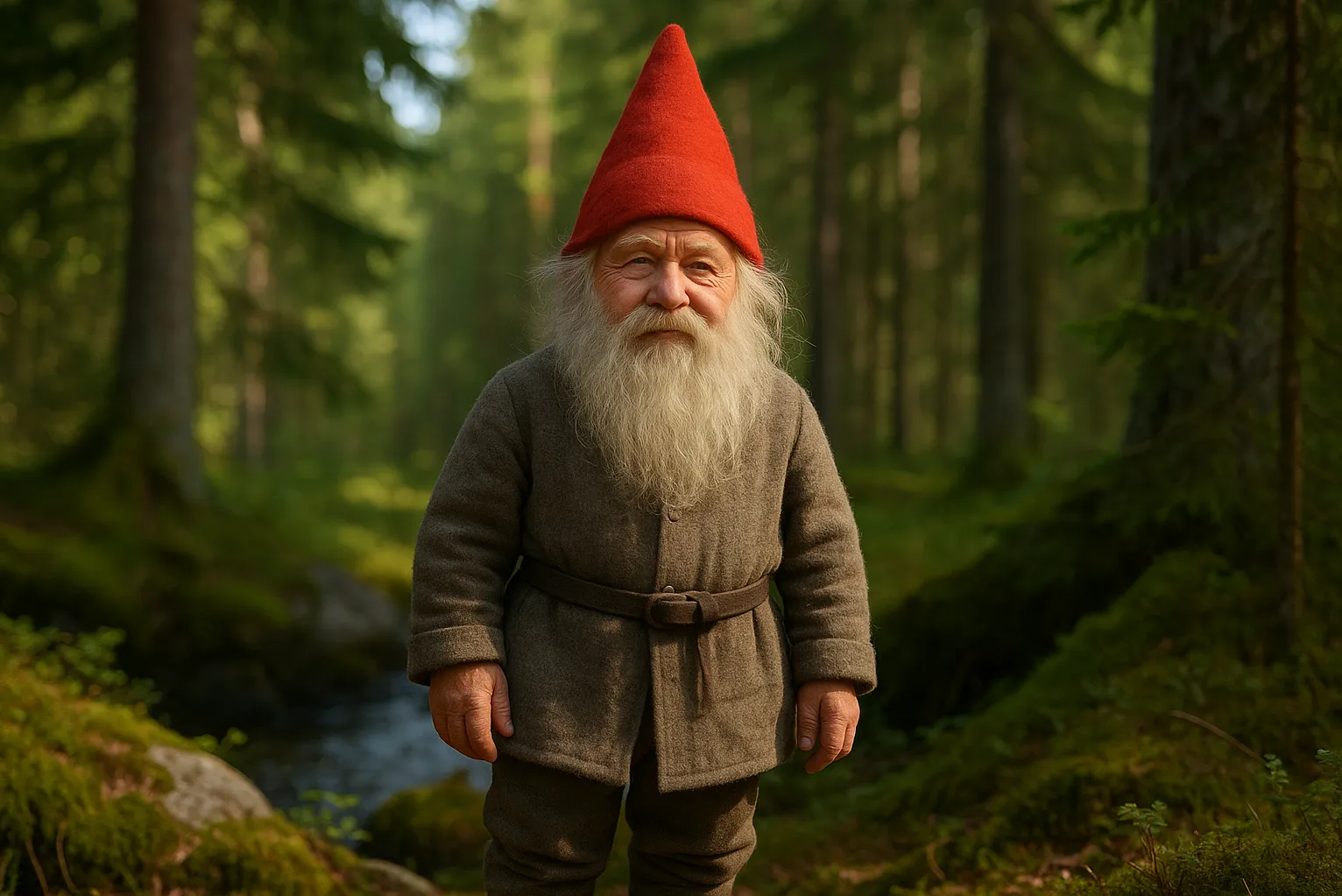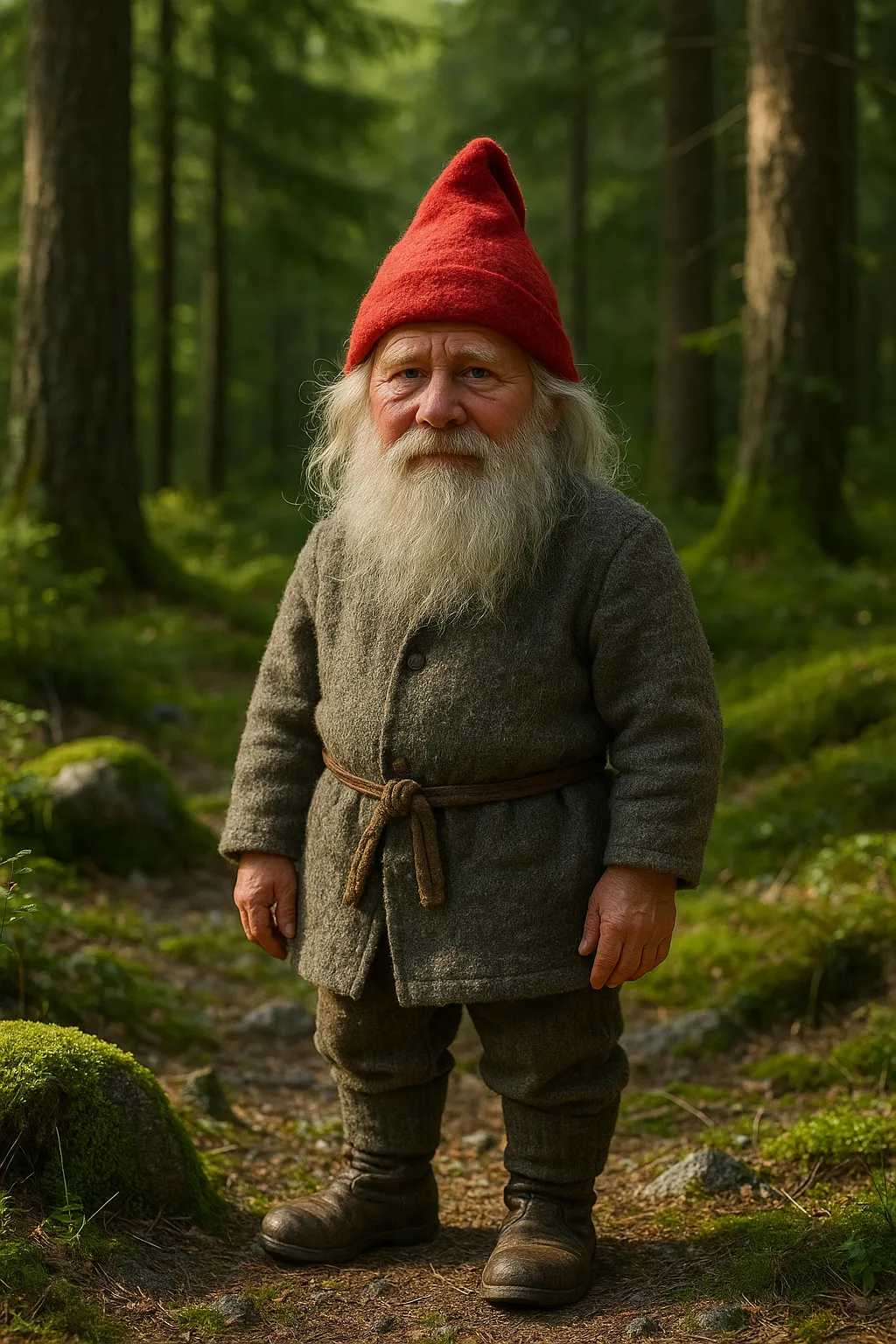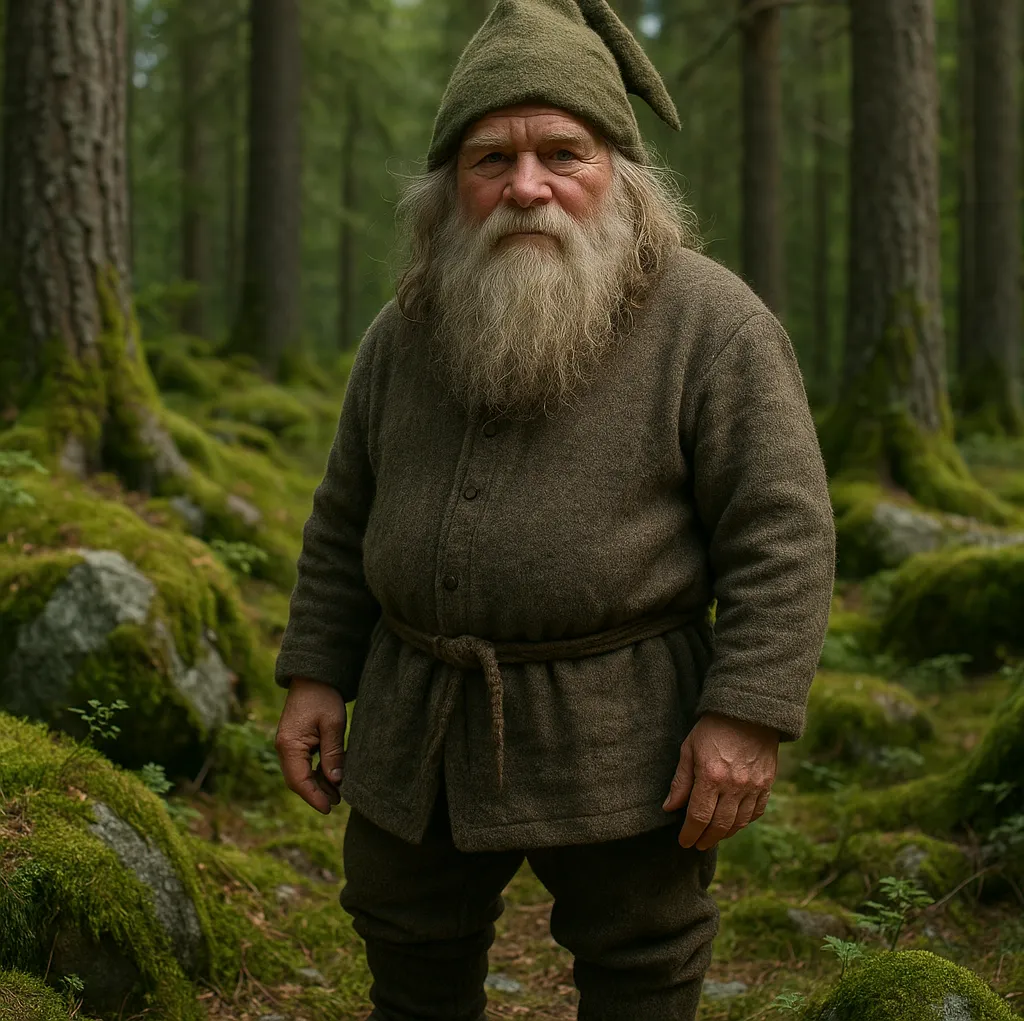 Liten, mössprydd väktare av vildmarkens stigar och rastplatser. Tomten i skogen hjälper den som går varsamt, släcker eldar rätt och tackar – men förvillar, trassar och varnar hårt när någon skräpar, svär eller bryter mot skogens vett.