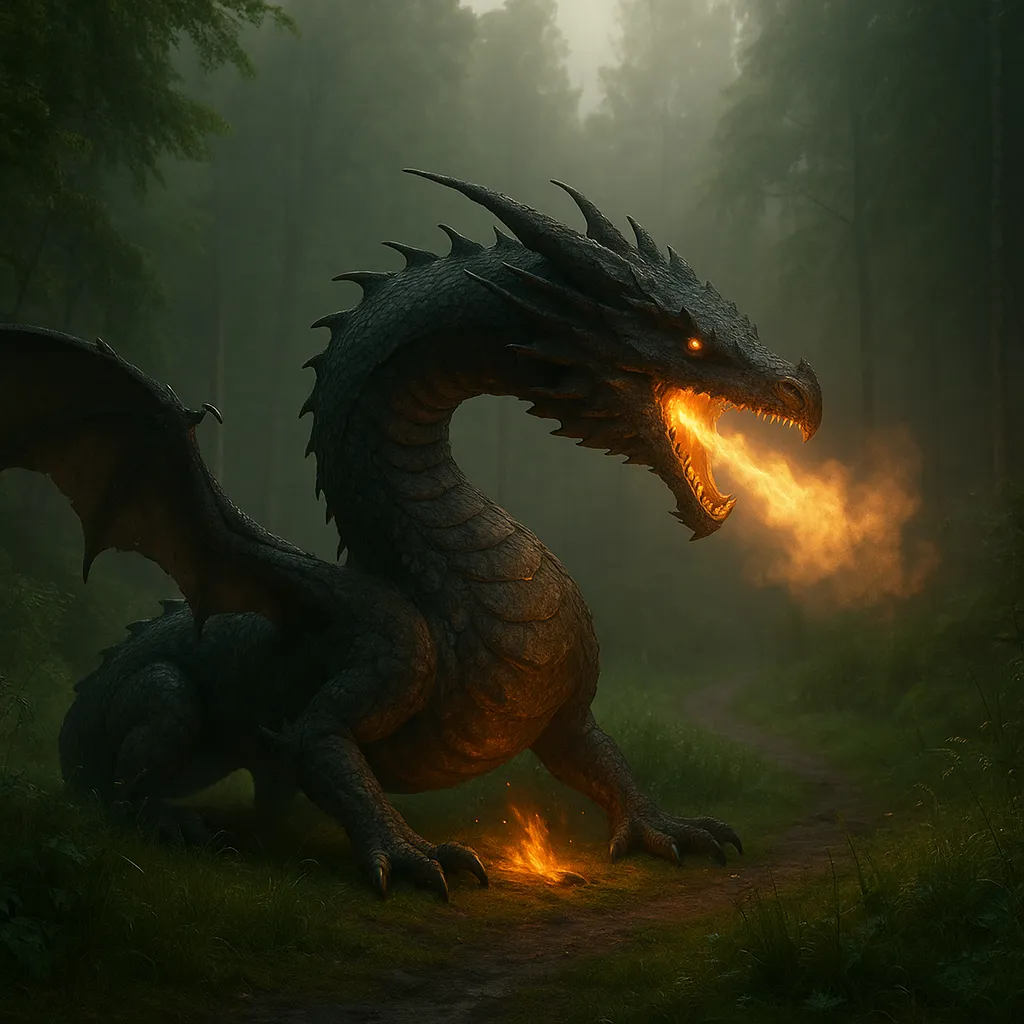 Draken är ett uråldrigt odjur i nordisk folktro. Den vaktar skatter, högar och avlägsna vatten och uppträder som väldig orm eller bevingad reptil. Den sprider hetta, rök och skräck och kan förgöra boskap och människor som närmar sig dess bo. Den som visar list och mod kan ibland få drakens skatt men risken är att väcka en vrede som bränner allt i sin väg.